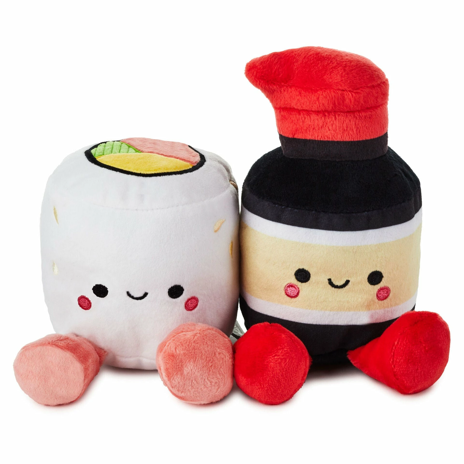 - Set of two sushi and soy sauce stuffed toys is made of soft plush fabric and features embedded magnets for connecting to each other.