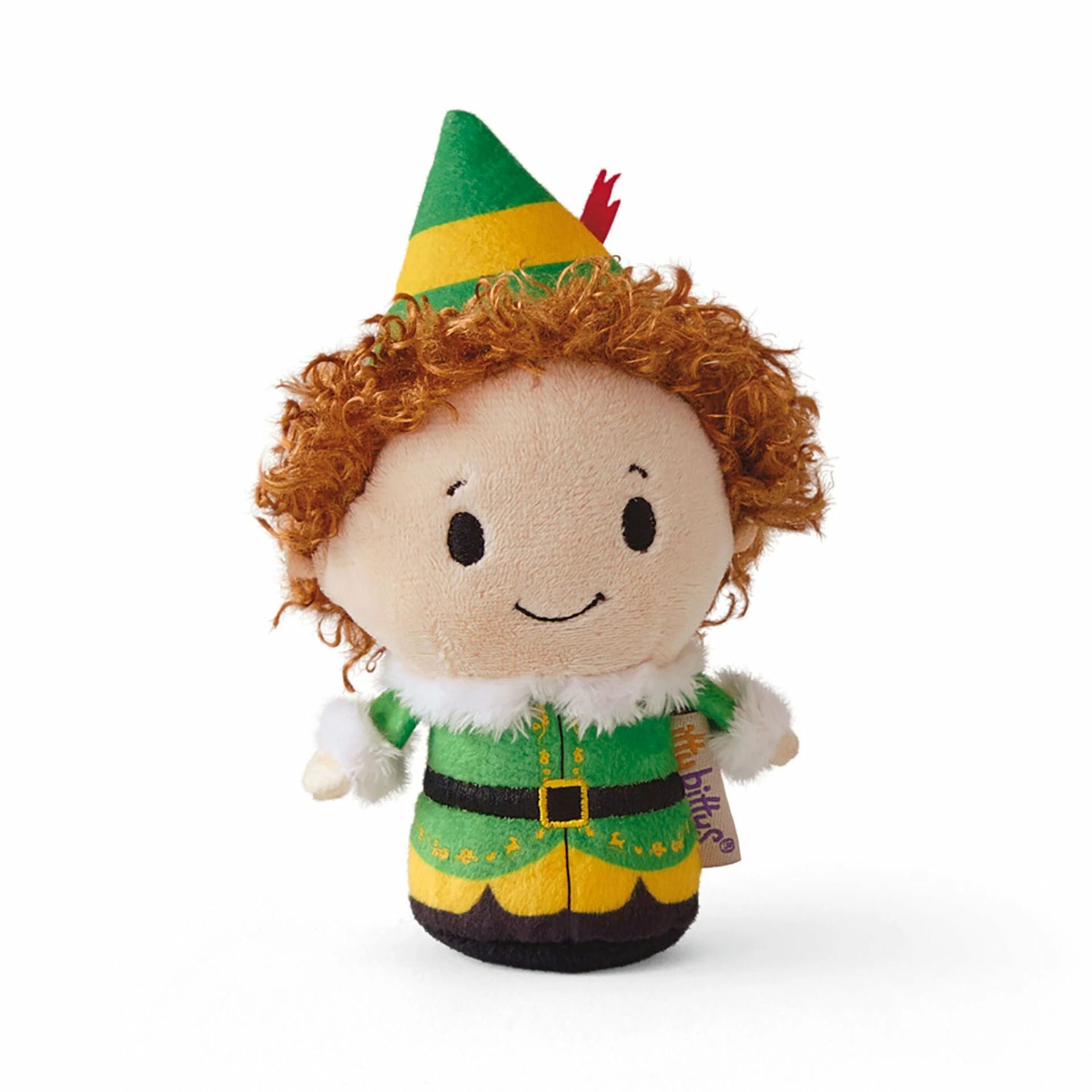 Keep yours-elf on your holiday toes with this cute addition to your itty bittys collection. Buddy the Elf itty bittys plush, wearing his iconic green elf suit and sporting curly red hair, includes a fun sound feature. Press him to hear one of five different phrases from “Elf” as you go about your day—eating from the four food groups and singing loud for all to hear. This fun plush Buddy makes a great gift for any fan of the holiday movie.
